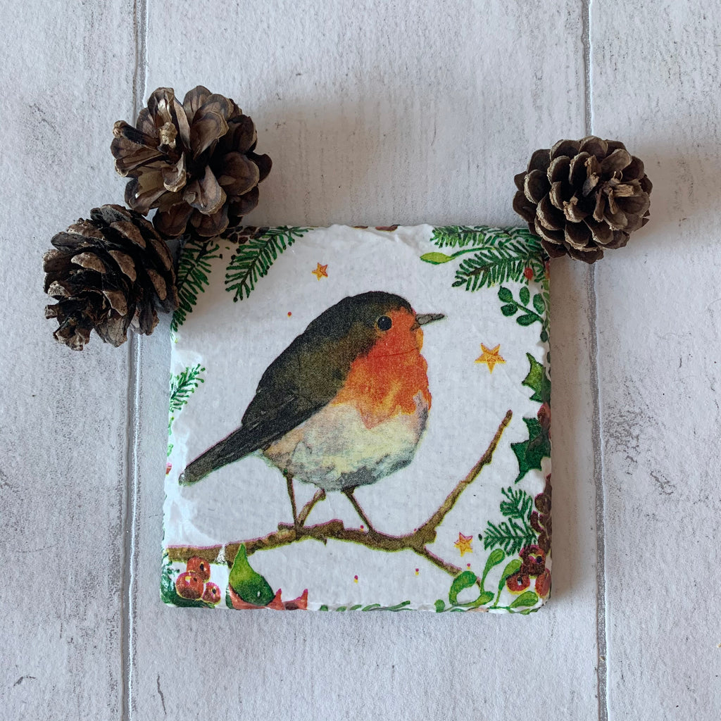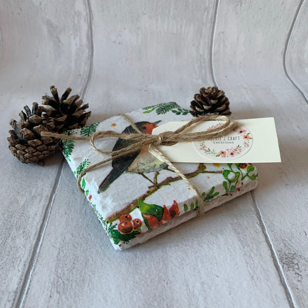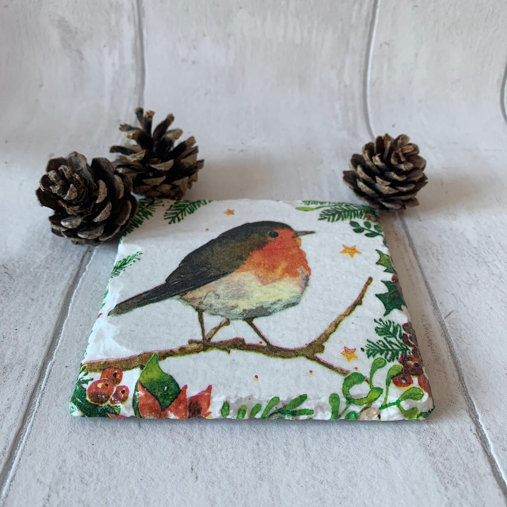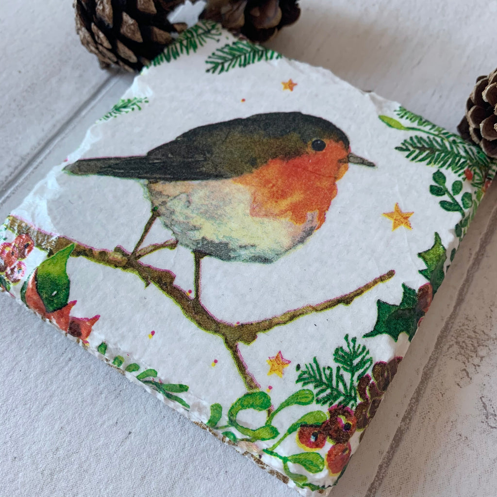 Christmas Robin Decoupaged Slate Coasters (Set of 2, Set of 4)