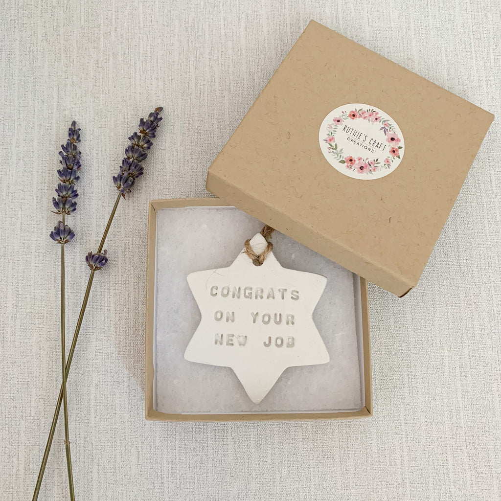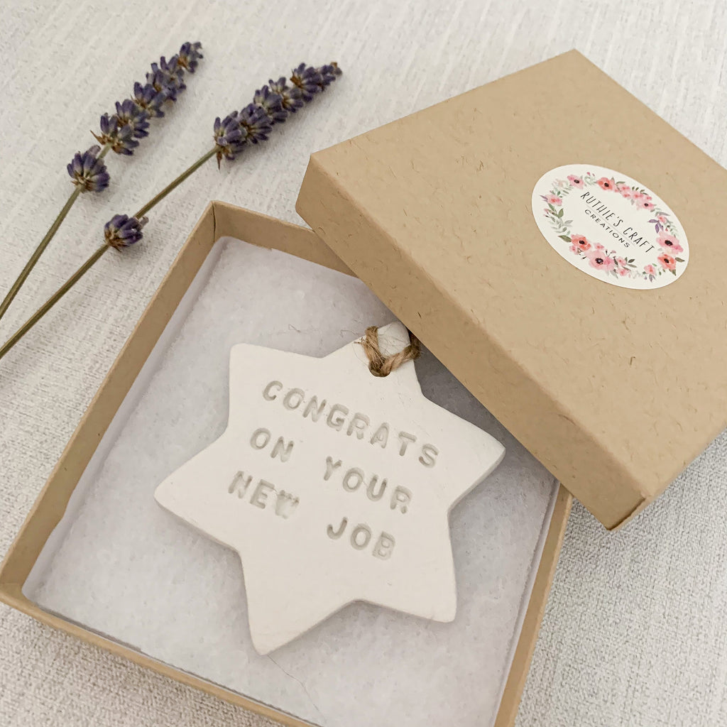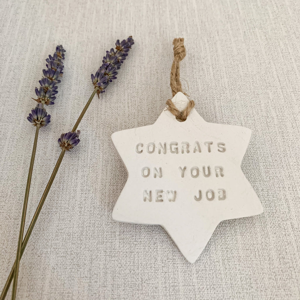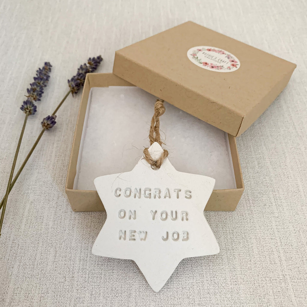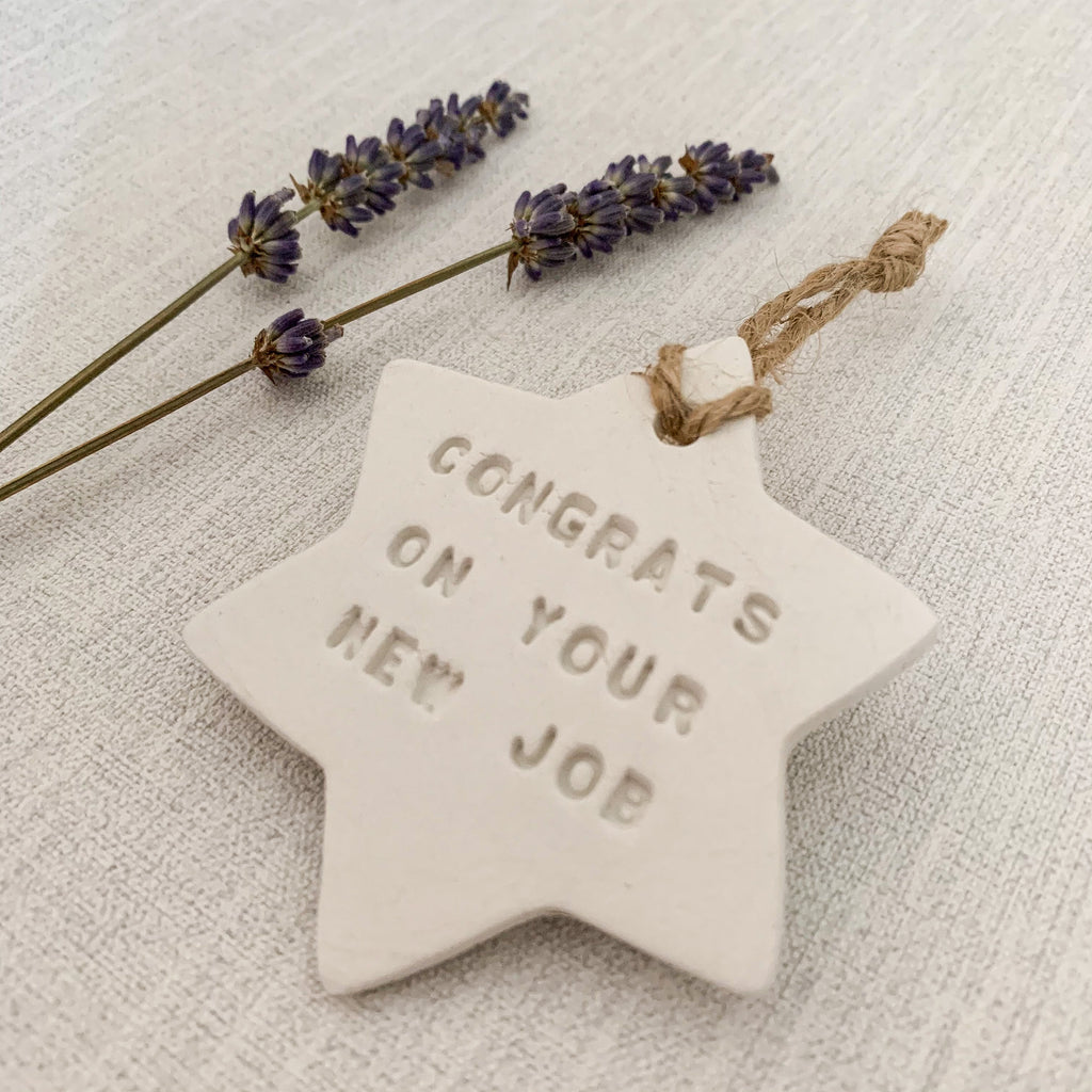 ‘Congrats On Your New Job’ clay hanging decoration - ideal gift to show someone you care
