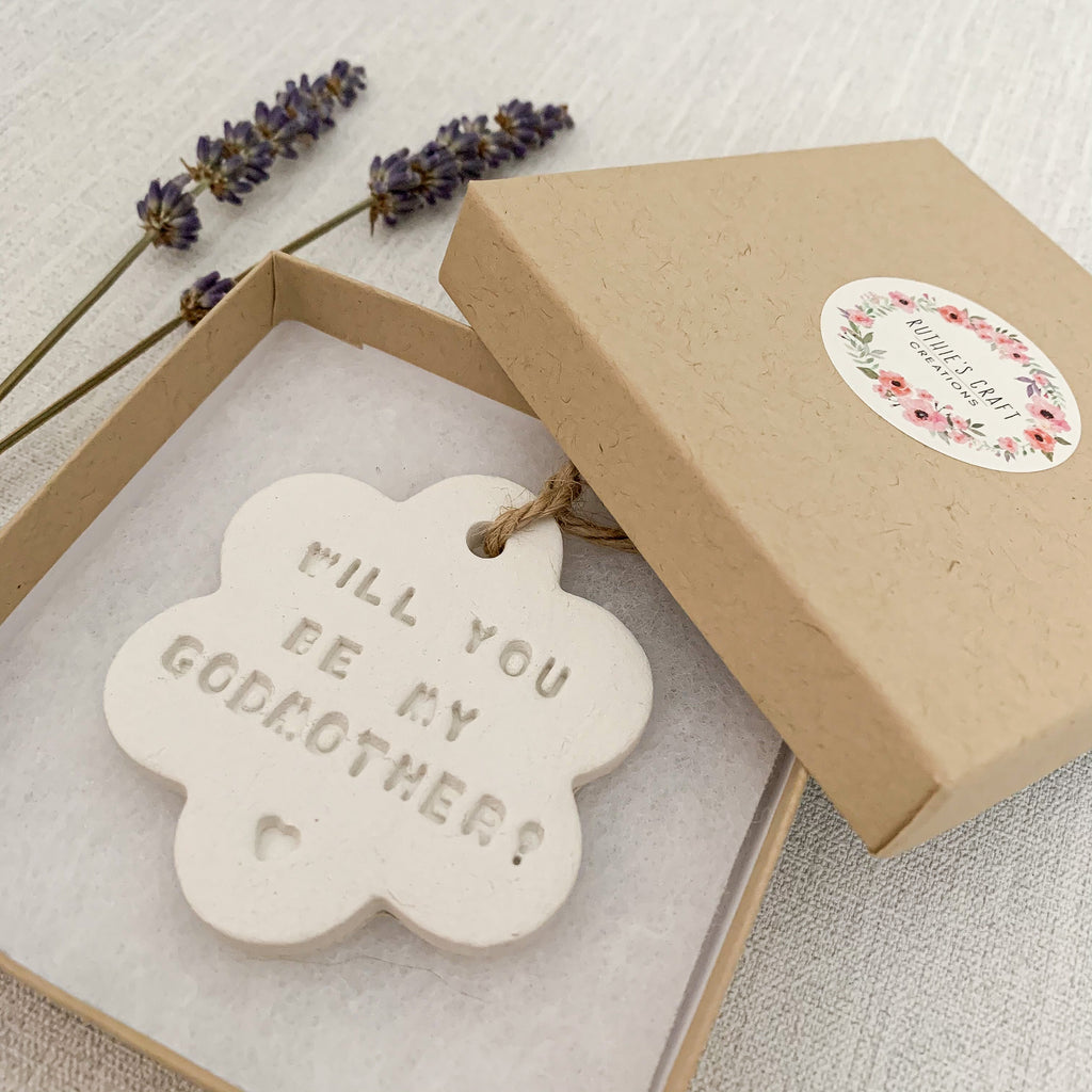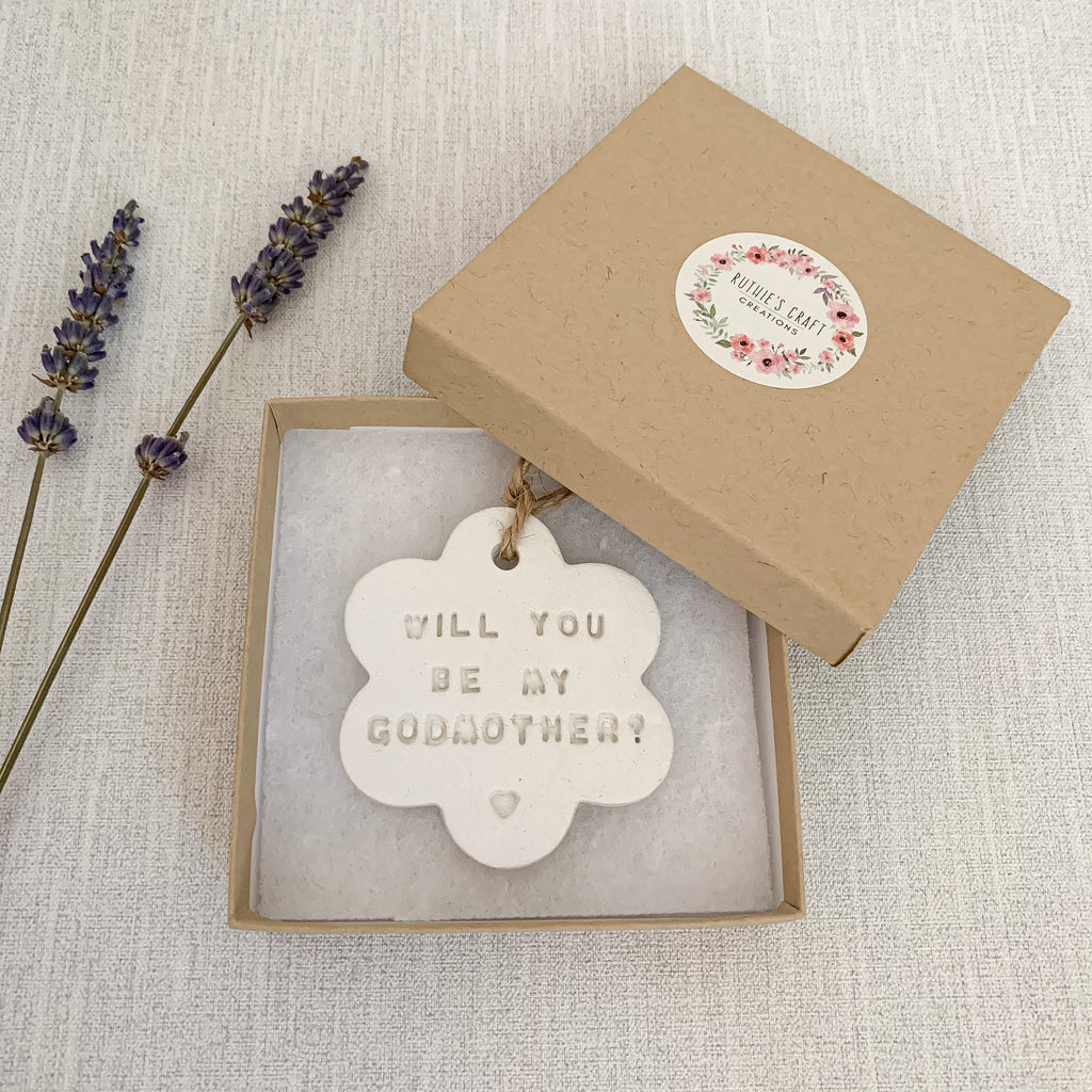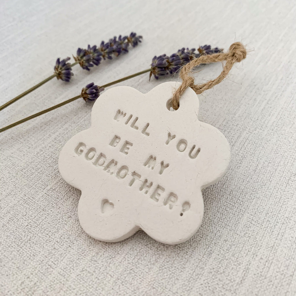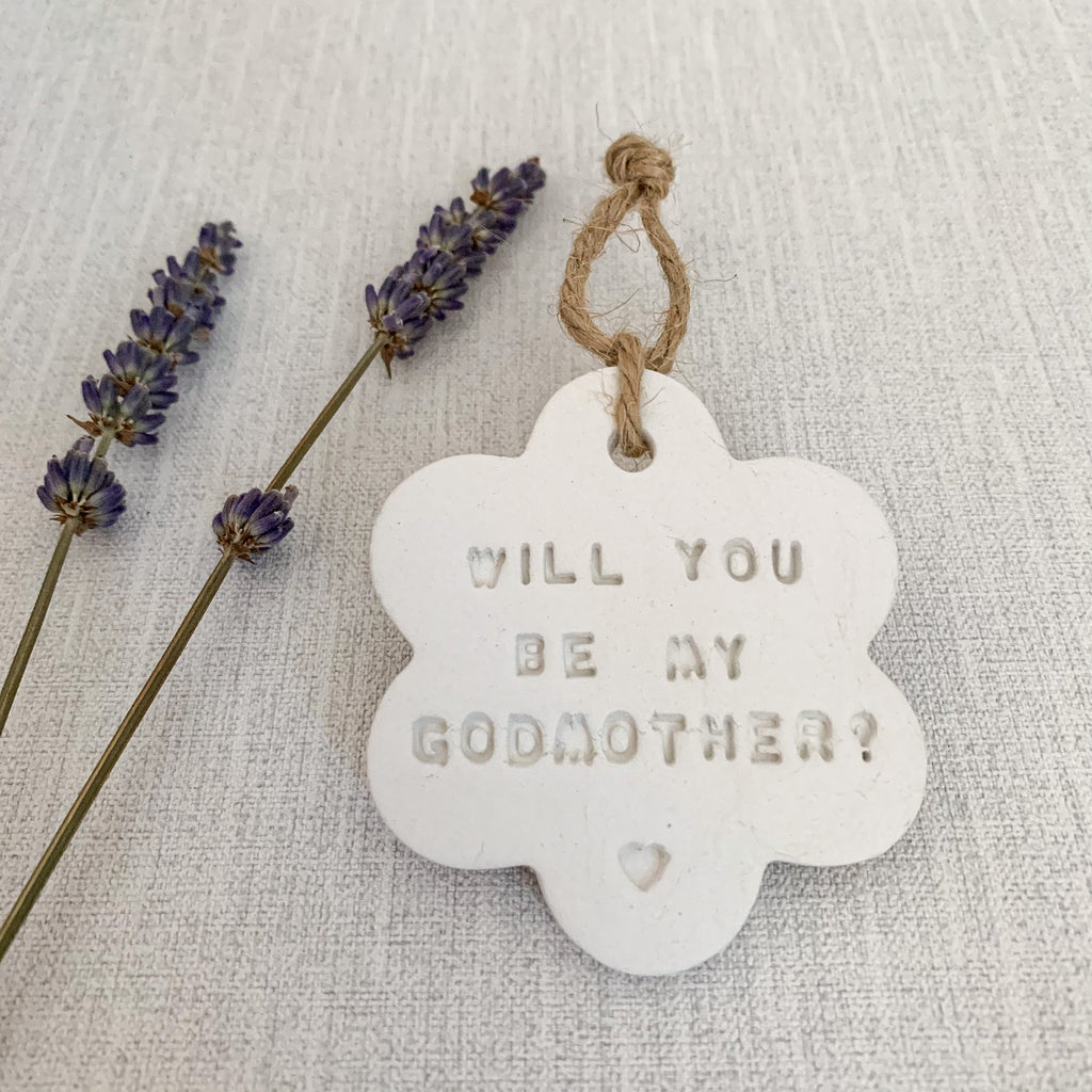 ‘Will You Be My Godmother?’ clay hanging decoration - ideal gift to show someone you care