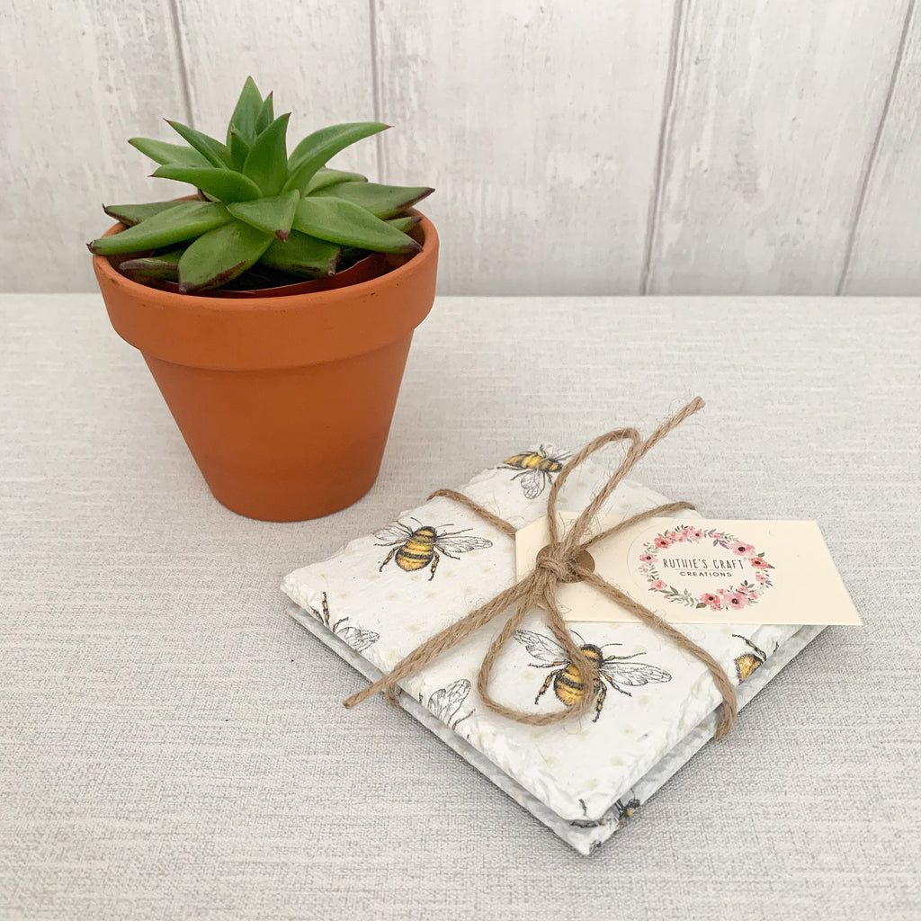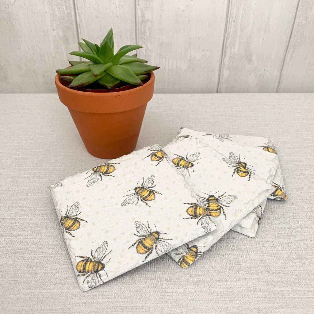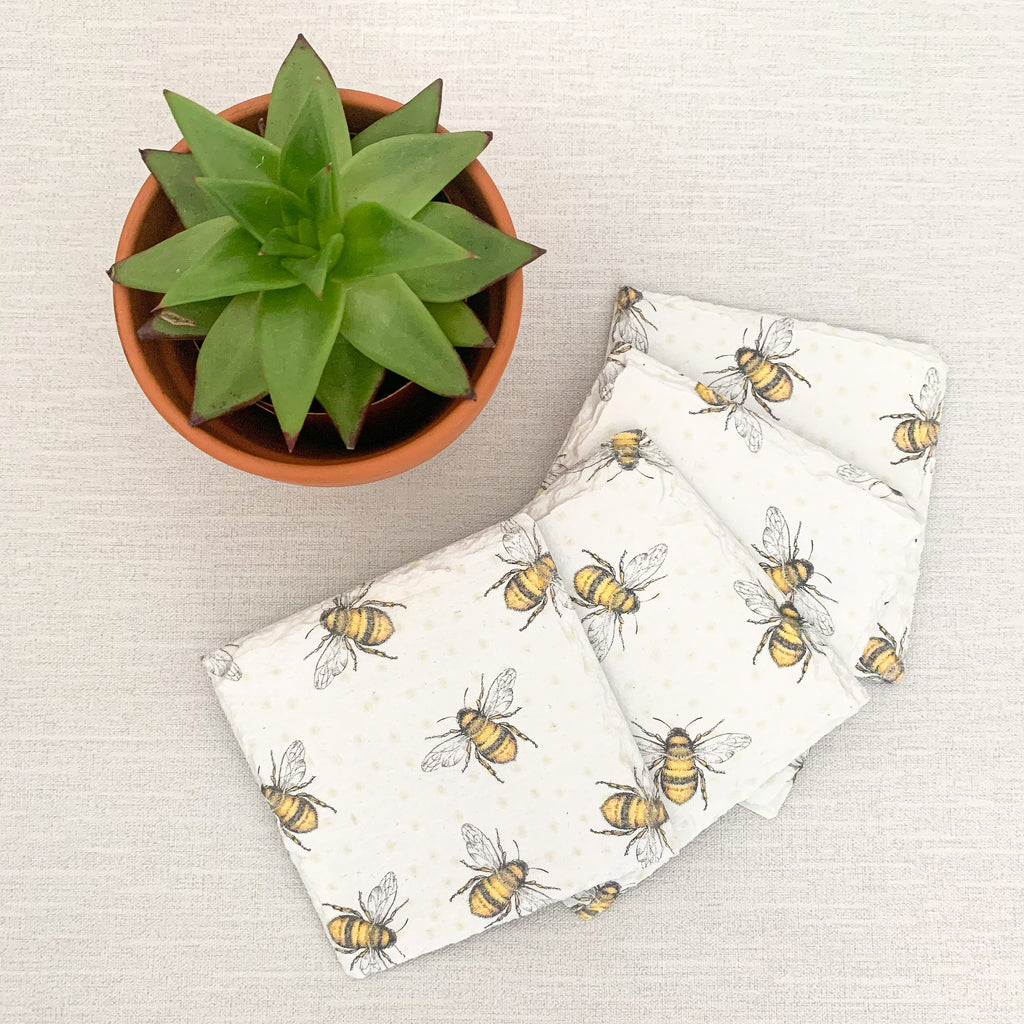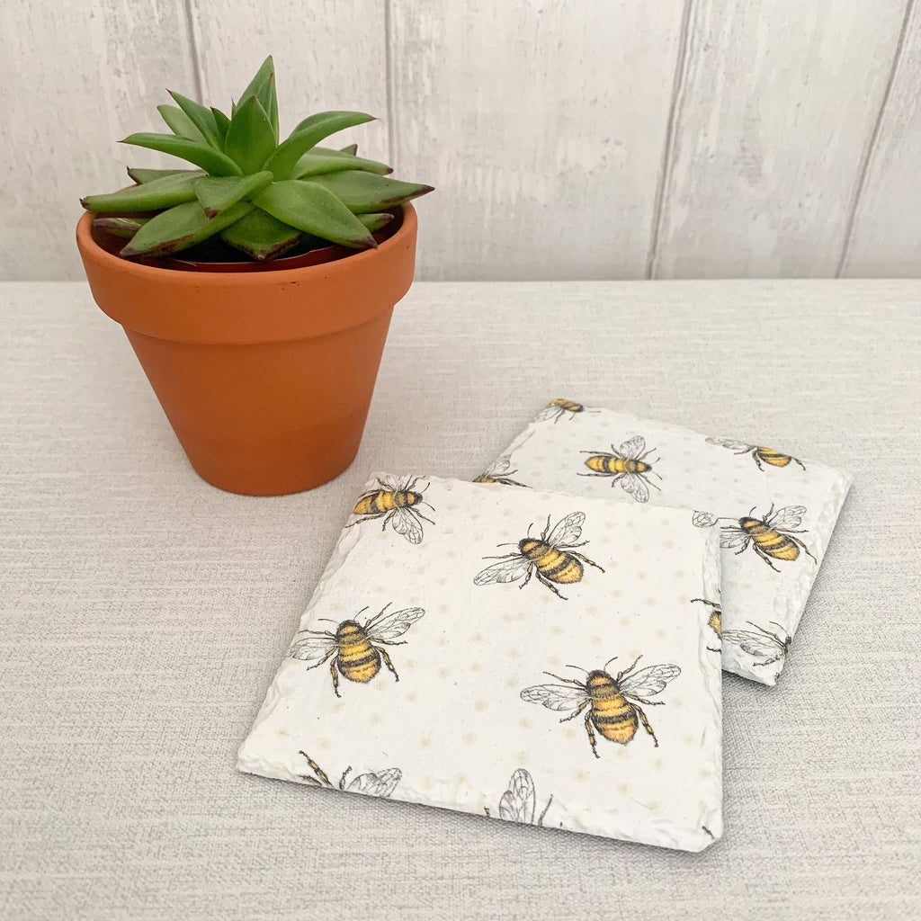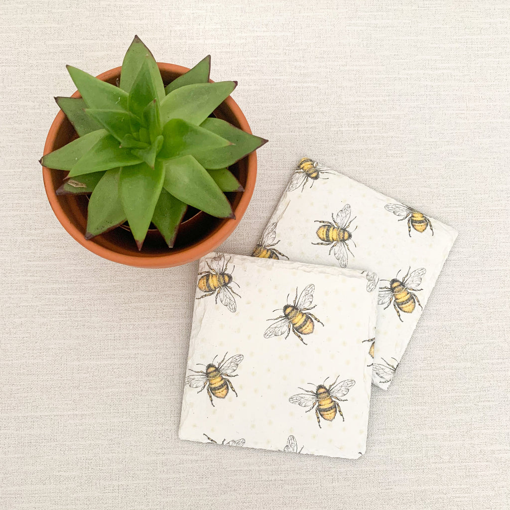Bee Decoupaged Slate Coasters (Set of 2, Set of 4)