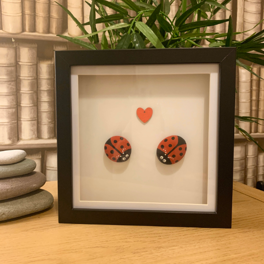 Ladybird Love Bugs Pebble Art Box Frame | Valentines Day Gift
