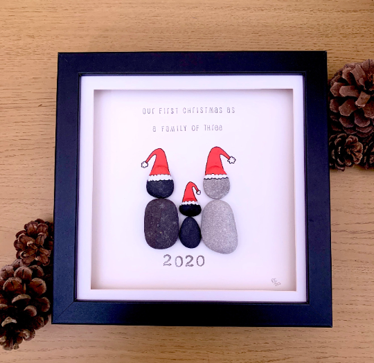 Our First Christmas As A Family Of Three Pebble Art Box Frame
