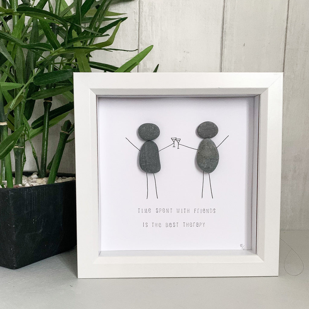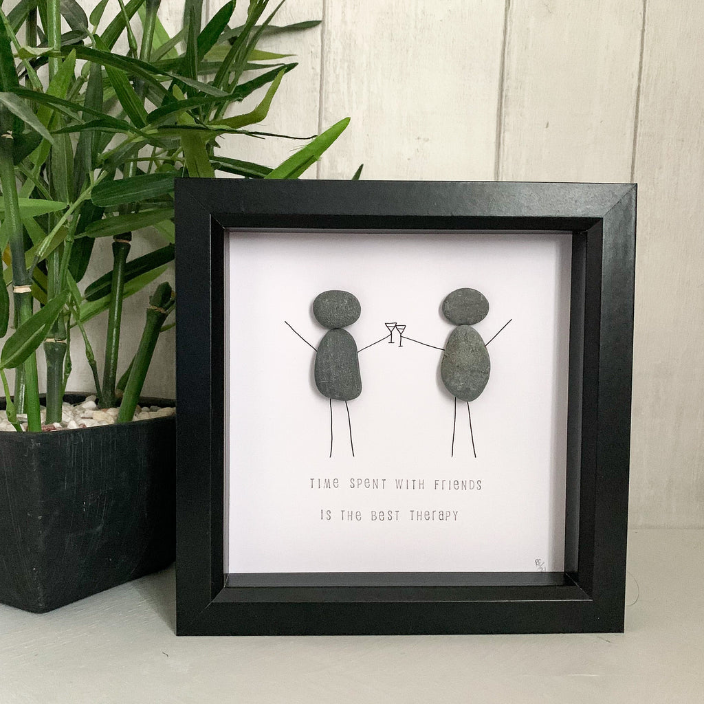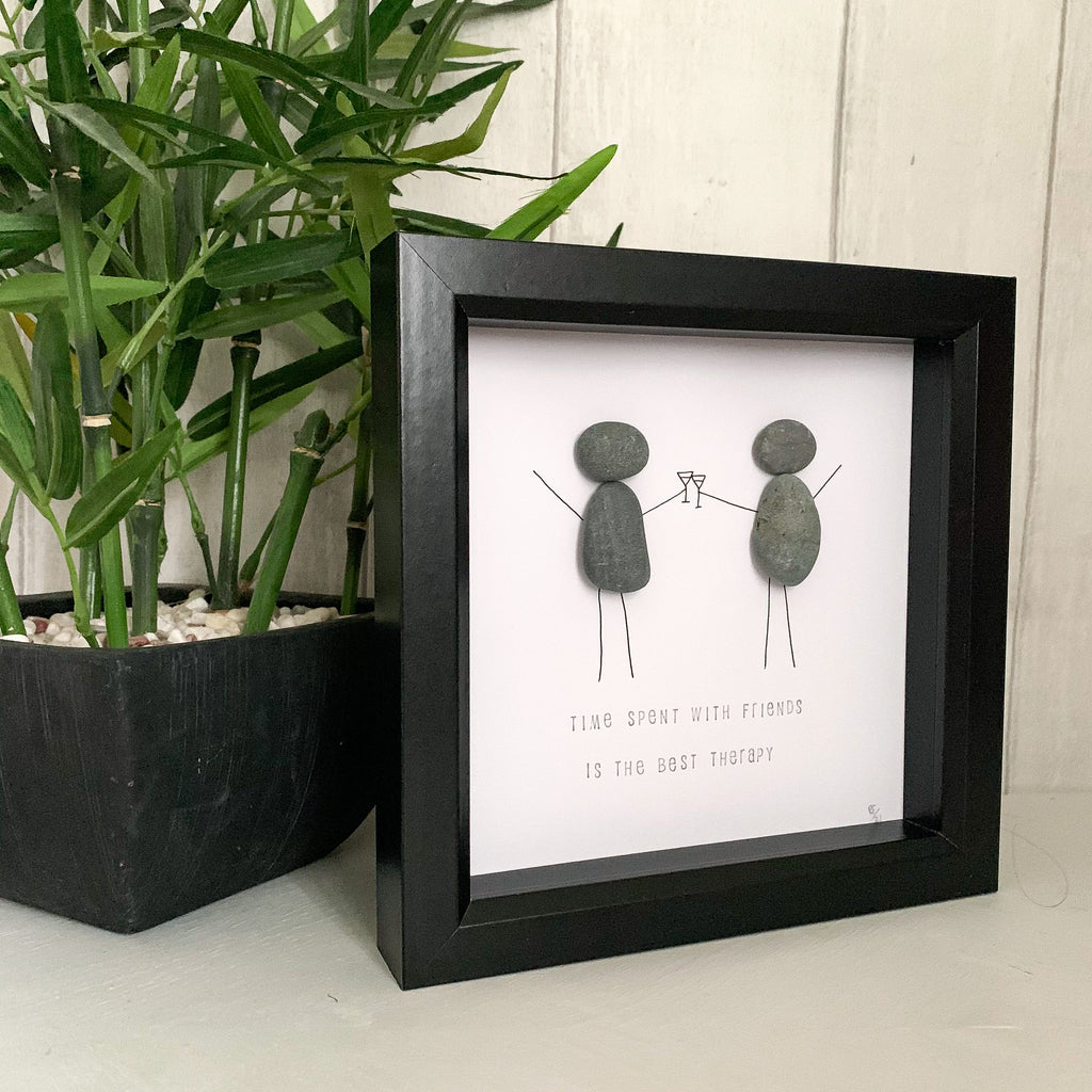 Time Spent With Friends Is The Best Therapy Pebble Art Box Frame