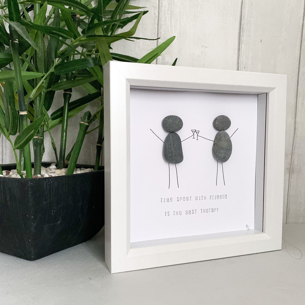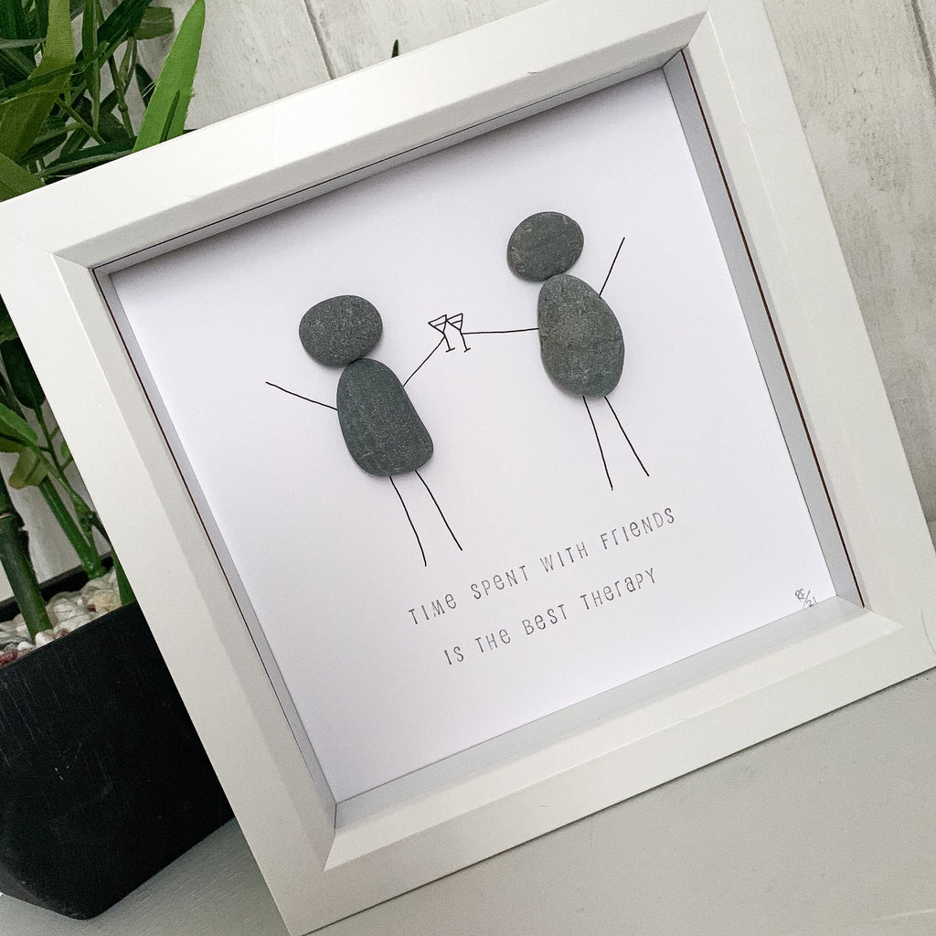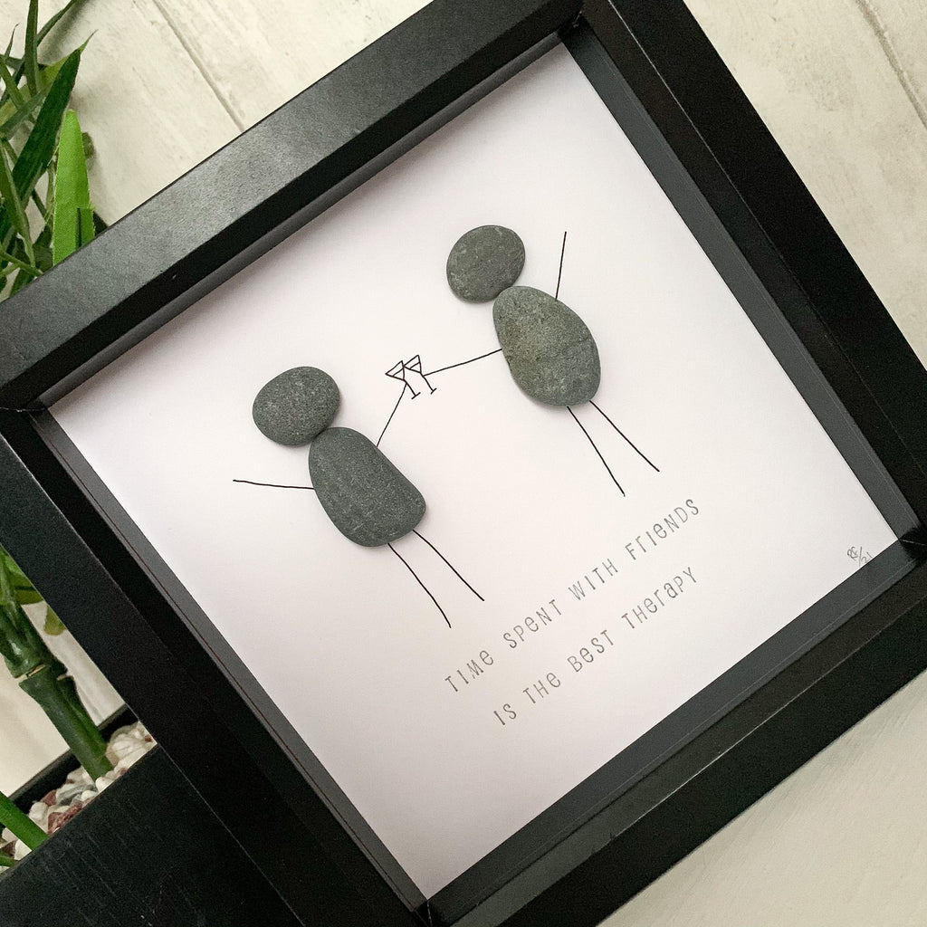 Time Spent With Friends Is The Best Therapy Pebble Art Box Frame