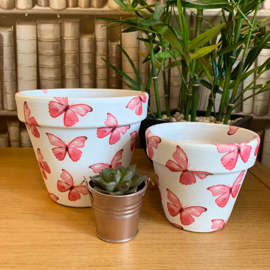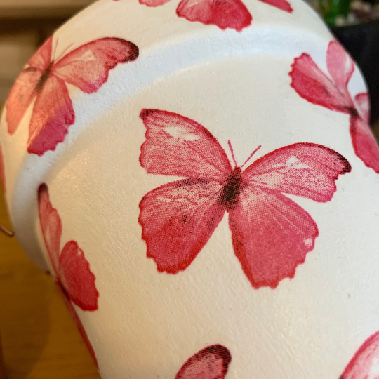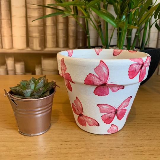 Pink Butterflies Decoupaged Pot - created with love and attention - the perfect gift for someone dear to you or a special addition to your home