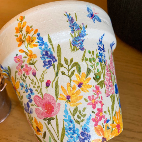 Wild Meadow Flower Decoupaged Plant Pot